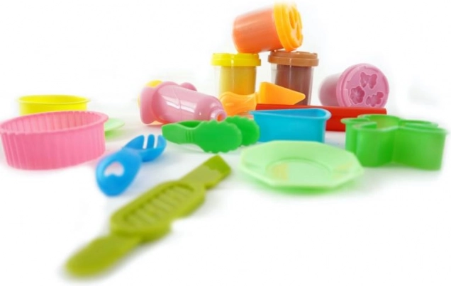 Include tagliapasta, forme, mattarello e altri accessori che sviluppano la motricità fine e la creatività dei bambini.