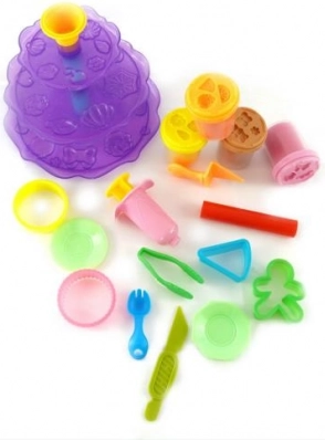 - 4 vasetti di pasta da modellare, alzatina a piani per dolcetti, stampini, tagliapasta, mattarello e altri accessori