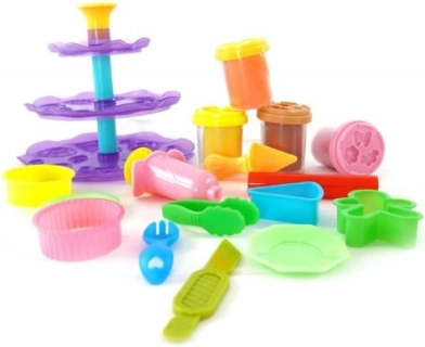 Questo colorato laboratorio di pasticceria con pasta da modellare trasforma la cameretta in una piccola bakery. I bambini possono modellare cupcake, tortine e biscotti, decorarli con i timbri inclusi ed esporli sull’alzatina a piani. Grazie alla consistenza morbida, la pasta si lavora benissimo e stimola pazienza e immaginazione.