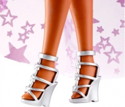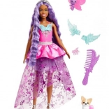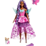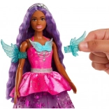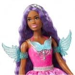 La bambola Barbie Brooklyn brilla in questi abiti fiabeschi, ispirati dalla magia e dalla fantasia. Indossa un vestito con una gonna in tulle decorata con stelle e dettagli di ali sul corpetto, che sottolineano il suo aspetto magico. La bambola è dotata di capelli viola lunghi 17 cm e vari accessori, tra cui un pettine, un cerchietto scintillante e mollette decorative per capelli.