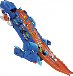 La gara su due corsie decide il vincitore, mentre il perdente viene “sputato fuori”. Inoltre puoi far partire le macchinine direttamente dalla bocca del dinosauro per un’azione al massimo.