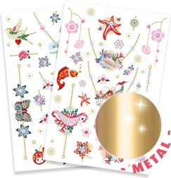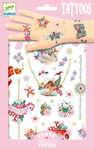 Decora la tua pelle con eleganti motivi di gioielli grazie ai tatuaggi temporanei DJECO. La confezione include 2 fogli con braccialetti, anelli e collane. L’applicazione è facile, veloce e dermatologicamente testata, così potrai goderti un divertimento sicuro e creativo con le amiche.