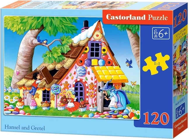 Colorato puzzle per bambini con il tema di Hansel e Gretel che unisce divertimento e apprendimento. Il puzzle ha 120 pezzi e, una volta completato, crea un immagine 32 × 23 cm. Grazie alla lavorazione di qualità, ai colori vivaci e alla dimensione piacevole dei pezzi, i bambini allenano pazienza, concentrazione, riconoscimento di forme e colori e spazio-temporalità.