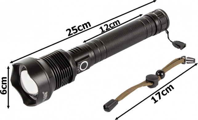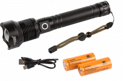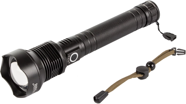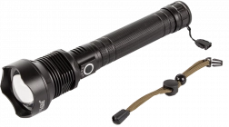 Con la funzione di zoom fluido è possibile regolare facilmente la larghezza e la portata del fascio luminoso fino a 1000 m, aumentando la sua flessibilità d'uso. Alimentata da moderne batterie ricaricabili per un uso prolungato.