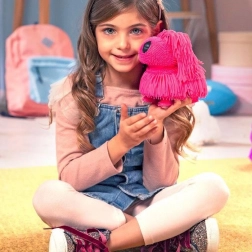 Con una sola pressione, il cagnolino Jiggly parte, abbaia e fa scodinzolare la coda. Un divertimento intuitivo che i bambini imparano subito.