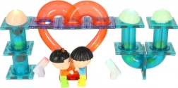I bambini possono sperimentare con forme, gravità e velocità delle biglie, provare percorsi diversi e testare la costruzione usando biglie normali e luminose. Il gioco favorisce concentrazione, pazienza e collaborazione.