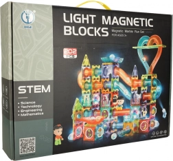 Questo creativo kit STEM combina pezzi magnetici e piste trasparenti per biglie. Gli elementi luminosi e i “riflettori” illuminano ogni costruzione e trasformano il gioco in un effetto di luce affascinante – particolarmente suggestivo al buio. I pezzi sono in plastica resistente, i collegamenti magnetici garantiscono stabilità e le parti a tunnel si fissano saldamente “a pressione”.