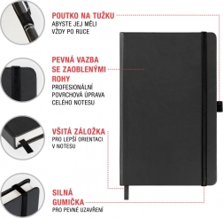 Il quaderno NOTIQUE Eucalyptus si distingue per il design moderno e la funzionalità studiata. La copertina rigida con elastico mantiene al sicuro i tuoi appunti, mentre il passante per penna e la tasca interna aggiungono comfort nell'uso quotidiano. La carta a righe dal tono avorio è gradevole per gli occhi ed è ideale per scrivere con penna o matita.