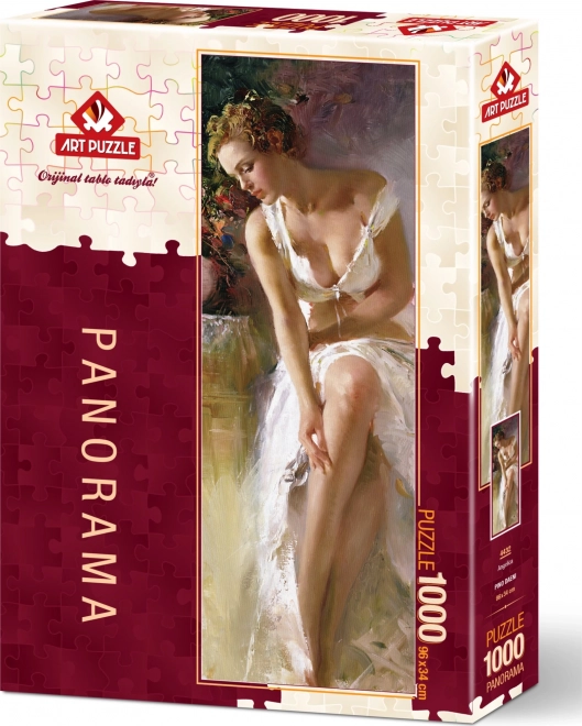 Goditi il relax con il puzzle verticale Angelica da 1000 pezzi, che una volta completato crea un'elegante immagine di 34 × 96 cm. Ideale per gli amanti dell'arte e delle sfide, perfetto come regalo e per la decorazione d'interni.