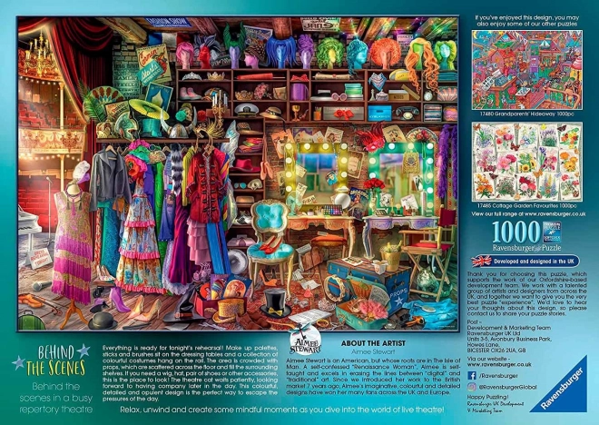 Il puzzle Ravensburger Dietro le Quinte offre una lavorazione di alta qualità, che delizierà tutti gli amanti dei puzzle. Comporre puzzle può essere un modo divertente per rilassarsi e allo stesso tempo sviluppare la propria logica e concentrazione. Grazie alle dimensioni di 70 x 50 cm offre un'esperienza visiva impressionante.