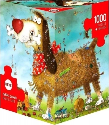 Scopri il mondo attraverso gli occhi dei cani con questo fantastico puzzle del caricaturista Marina Degan. Grazie alla scatola triangolare insolita, che include anche un poster come modello, questo puzzle non è solo un'esperienza di assemblaggio, ma anche un bellissimo elemento decorativo. L'immagine assemblata misura circa 70 x 50 cm e infrange gli stereotipi con il suo design unico e qualità.
