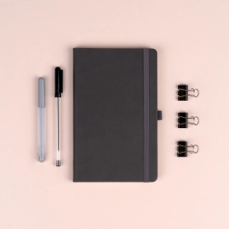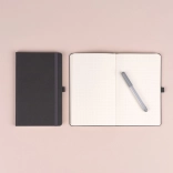 Il taccuino puntinato NOTIQUE grigio nel formato 13 × 21 cm unisce design minimalista e funzionalità affidabile. Grazie alla rilegatura rigida e agli angoli arrotondati resiste all'uso quotidiano in zaino o borsa. Gli accessori pratici – elastico, passante per penna e segnalibro in tessuto – assicurano che tutto sia a portata di mano e gli appunti sempre sotto controllo.
