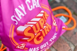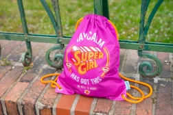 Il look rosa acceso con la scritta “Stay Calm, Super Girl Has Got This” dona energia e stile.