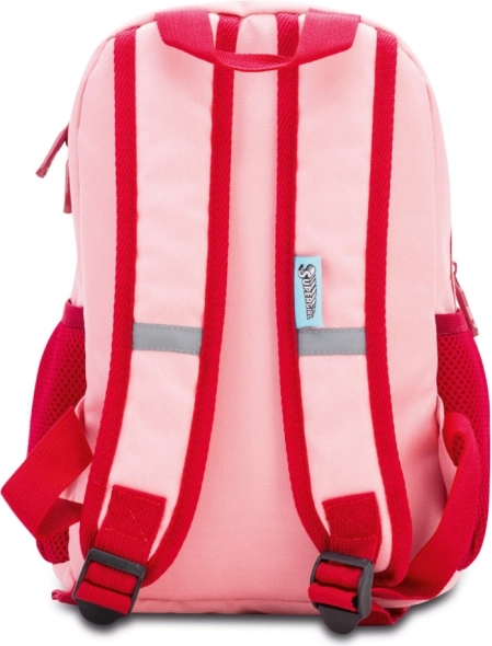 Per maggiore sicurezza durante la camminata, lo zainetto è dotato di elementi riflettenti. Le tasche laterali in rete sono ideali per la borraccia, e grazie al manico robusto lo zaino si trasporta facilmente anche a mano. Il resistente tessuto sopporta l'uso quotidiano all'asilo e nelle gite.