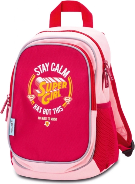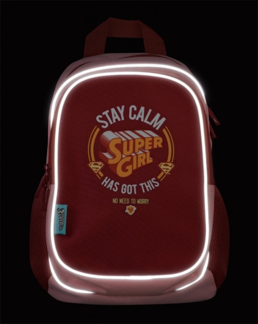 Il motivo SUPER GIRL diverte le bambine, mentre le tasche laterali in rete tengono la borraccia o i piccoli oggetti sempre a portata di mano. La tasca frontale con zip consente un accesso rapido.