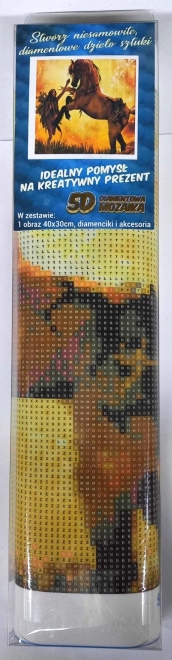 La pittura diamantata è un’attività rilassante e creativa, in cui con una penna applicatrice trasferisci piccole gemme su una tela prestampata con strato adesivo. Il motivo del domare il cavallo risalta grazie all’effetto scintillante e, una volta terminato, puoi incorniciarlo e usarlo come decorazione per la casa (cornice non inclusa).