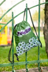 Ottima scelta per i fan dei temi zombie, questo zaino con cordoncino combina funzionalità con un design giocoso. Con dimensioni di 34 x 42 cm e materiale in tessuto resistente, è ideale per piccoli oggetti che necessiti avere sempre con te. Si chiude facilmente e si indossa come uno zainetto grazie alle corde resistenti.