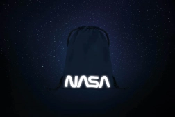 La sacca zaino blu è dotata di un logo NASA evidente, che si illumina al buio e aumenta la visibilità.