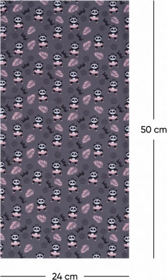 Taglia universale per adulti e design accattivante con panda e dettagli rosa su base grigia completa qualsiasi outfit.