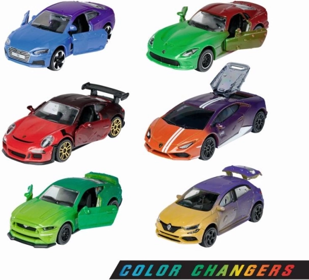 Queste macchinine dettagliate offrono l’esclusivo effetto Color Changers: quando raffreddate a circa 10 °C cambiano colore e, una volta riscaldate a circa 22 °C, tornano alla tonalità originale. Ogni modello è realizzato in metallo con inserti in plastica, ha la ruota libera, parti apribili e ruote ammortizzate per una guida più fluida.