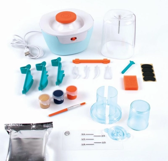 Tutto il necessario per creare prodotti in ceramica è incluso nel pacchetto, permettendo un uso immediato e divertimento.