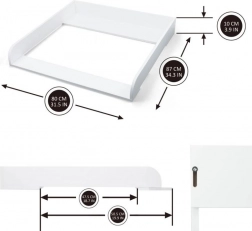 Questo fasciatoio, realizzato in legno di alta qualità, offre un luogo sicuro e stabile per cambiare il vostro bambino. È facile da montare, il che permette un uso rapido e semplice. Grazie alla possibilità di estendere il pannello anteriore, offre spazio extra quando necessario.