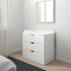 Il soprapiano per fasciatoio è progettato per essere compatibile con vari modelli di comò di IKEA, compresi Nordli, Malm e Hemnes. Perfetto per un adattamento stiloso e funzionale del vostro interno.