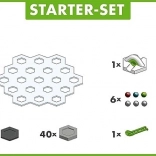 Il set di partenza Gravitrax include oltre 100 pezzi e 18 diversi elementi costruttivi che permettono di creare sia piste da corsa che percorsi complessi pieni di curve e ostacoli per una o più biglie.