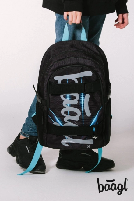 Lo zaino scolastico Baagl Skate Bluelight è una scelta ideale per l'uso quotidiano a scuola o nel tempo libero. Con tre scomparti separati chiudibili, organizer interno e tasca per laptop o tablet da 15 pollici, questo zaino offre ampio spazio per tutti i materiali scolastici.