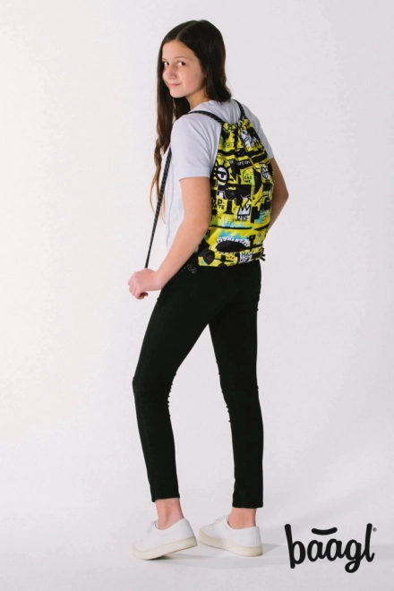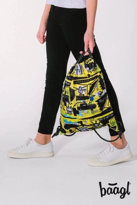 Sacca/zaino pratica e leggera con originale design street art. Il materiale resistente di BAAGL si pulisce facilmente, ideale per scuola, allenamento e città. Grazie alla chiusura con cordini, il contenuto si sigilla rapidamente e si trasporta in sicurezza.