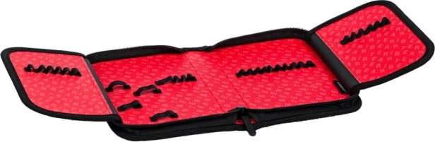 Le alette interne con passanti elastici mantengono penne, matite e altri accessori perfettamente in ordine e sempre a portata di mano.