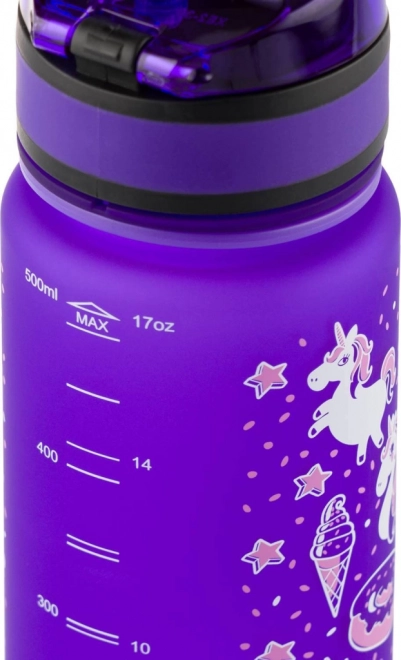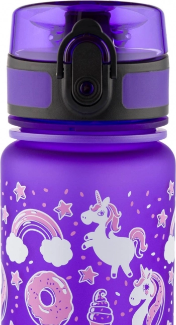 La bottiglia è decorata con adorabili motivi di unicorni che ogni bambino apprezzerà. Combina un aspetto giocoso con colori freschi.
