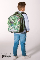 Lo zaino scuola Baagl Dinosauri è progettato con una struttura robusta e rinforzata che protegge i materiali scolastici come una corazza protettiva. Sistema a due scomparti garantisce una distribuzione ottimale del peso, dove il vano anteriore include un pratico organizer, una tasca per oggetti piccoli e un gancio per le chiavi.