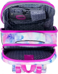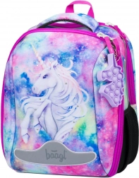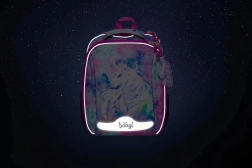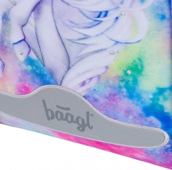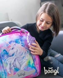 La cartella scolastica Baagl Shelly Unicorno è caratterizzata da un corpo rinforzato che protegge il contenuto della cartella come una corazza. Grazie al sistema a due scomparti, il carico è distribuito uniformemente, mentre la camera anteriore include un pratico organizer con una tasca per piccoli oggetti e un moschettone per le chiavi.
