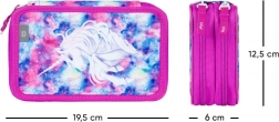 Porta un po' di magia a scuola con questo astuccio a due piani con un bellissimo motivo unicorno. Il suo dorso rinforzato garantisce una manipolazione più facile e gli elastici di qualità consentono di organizzare anche pastelli triangolari grandi.