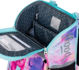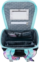Altre caratteristiche includono una tasca frontale isolata con fibbia, struttura leggera con peso di 1.100 g e capacità di 18 l. La cartella è realizzata in materiale impermeabile e grazie alla base solida è auto-portante. Per la sicurezza del bambino sono presenti elementi riflettenti e include un pendente di peluche alla moda.