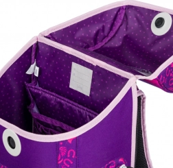 Elegante set scolastico con motivo cavallo per piccoli alunni dalla 1ª classe, comprende una cartella ergonomica, un capiente astuccio e una pratica sacca per le scarpe. La cartella offre schienale ergonomico sagomato e sistema scorrevole ERGO ADJUSTABLE SYSTEM per un adattamento perfetto, chiusura magnetica Fidlock per un'apertura facile, elementi riflettenti per la sicurezza e peso contenuto sotto 1.200 g. Il set si distingue per la lavorazione di qualità, i materiali idrorepellenti e il bellissimo design viola-rosa con motivi di cavalli.