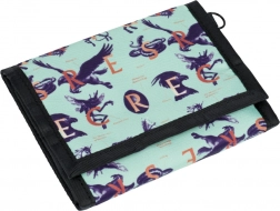 Questo portafoglio vanta un design fantastico con motivi di creature mitiche e grandi lettere.