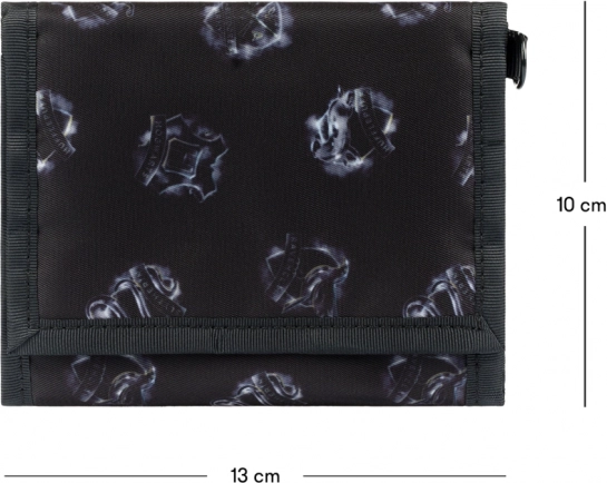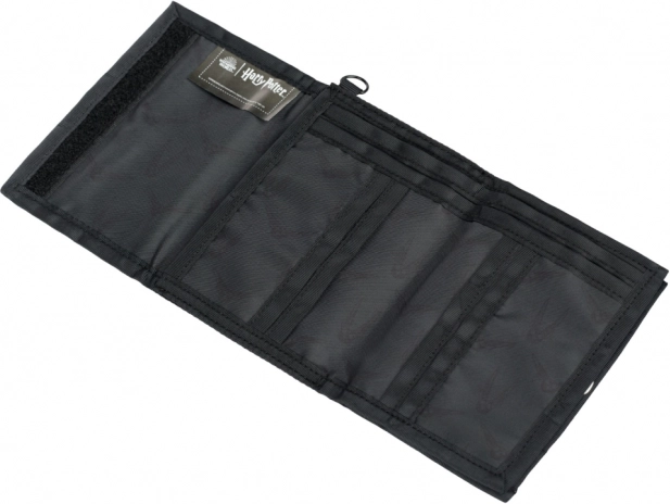 Il motivo nero con temi di Hogwarts conferisce al portafoglio un aspetto unico.