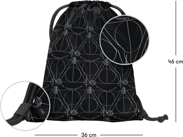 Questo zaino a tema Harry Potter Doni della Morte è la scelta perfetta per i fan di questa amata serie. Realizzato in materiale robusto e lavabile, offre non solo un aspetto elegante, ma anche un uso pratico per le tue attività di svago. La sua chiusura con cordini permette un'apertura e chiusura semplici, mentre gli spallacci regolabili garantiscono comfort durante l'uso.
