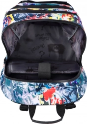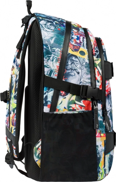 Lo zaino è progettato per comfort e funzionalità. Include tasche laterali in rete robusta, ideali per una bottiglia d'acqua. Il compartimento anteriore dello zaino è dotato di due cinghie per fissare uno skateboard, per portarlo facilmente ovunque. La capacità totale dello zaino è di 25 litri, con una portata fino a 7 kg.