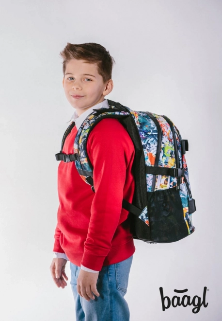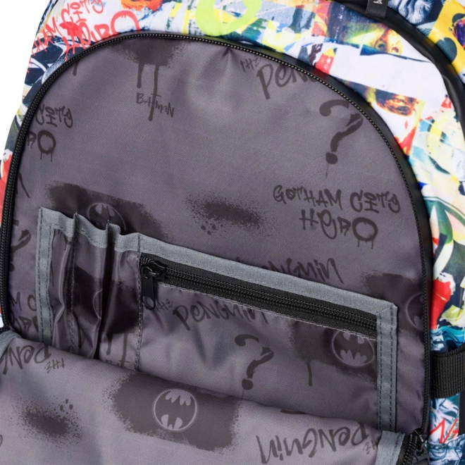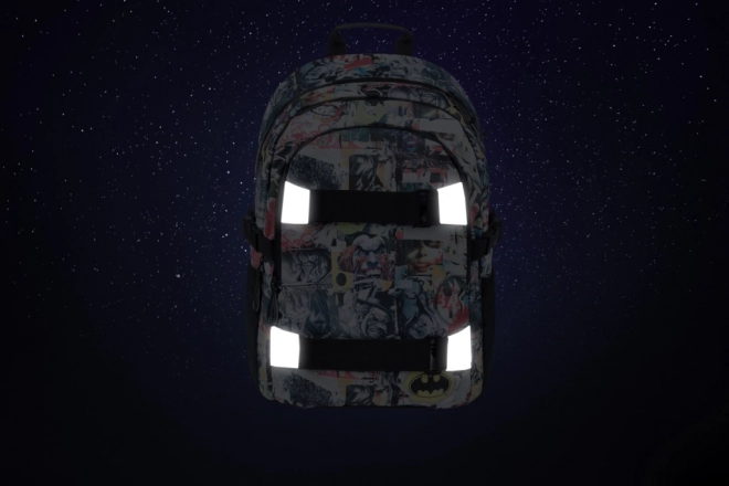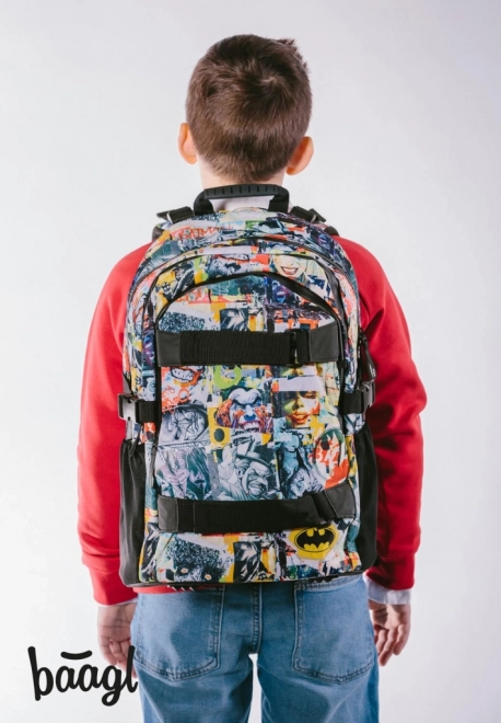 Stile da fumetto e un logo di Batman visibile conferiscono allo zaino un aspetto unico, ideale per giovani fan dei supereroi.