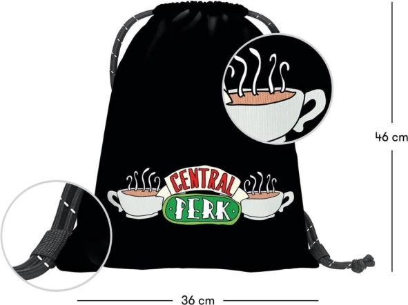 Sacchetto per scarpe con motivo 'Central Perk' della famosa serie Friends è un grande accessorio per i fan. Questo elegante e pratico sacchetto è realizzato in materiale tessile resistente e lavabile. Grazie alla chiusura con cordini robusti, può essere trasportato facilmente sulla schiena.