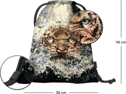 Elegante sacca zaino con motivo tigre della collezione eARTh by Lukero, ideale per scarpe e piccoli oggetti per le attività nel tempo libero. Offre materiale robusto e lavabile e chiusura a coulisse con cordini resistenti, che consentono anche un comodo trasporto sulla schiena.