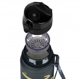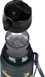 Pratica e resistente borraccia in Tritan da 500 ml, ideale per scuola, lavoro e sport. Dispone di un tappo flip-top con blocco anti-perdite, filtro per frutta o tè e comodo laccetto per il trasporto. Il materiale sicuro senza BPA non ha odore di plastica ed è adatto anche per bevande calde.