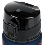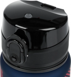 Il coperchio con pulsante e sicura si manovra facilmente con una mano e impedisce in modo affidabile fuoriuscite indesiderate nello zaino.