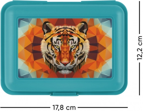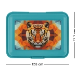Scatola in plastica turchese con grafica colorata della tigre sul coperchio che aggiunge stile a ogni pranzo.