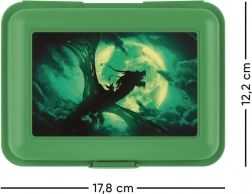 Questa pratica scatola per la merenda è la soluzione ideale per la conservazione quotidiana dei vostri piatti preferiti. Con un design elegante di un drago che vola verso la luna piena, non solo manterrà fresco il vostro cibo, ma offrirà anche un aspetto originale. La facile chiusura con un unico gancio e la divisoria interna garantiscono che ogni pezzo di cibo resti al suo posto.