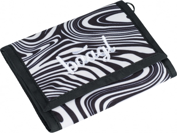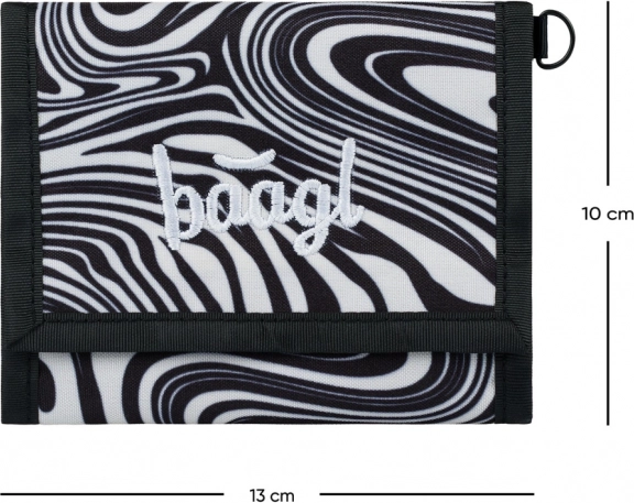 Questo portafoglio BAAGL offre una combinazione unica di stile e funzionalità. Grazie al materiale robusto e resistente, è ideale per la scuola e per l'uso quotidiano. È decorato con un motivo astratto bianco e nero e un delicato testo ricamato sul davanti.