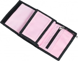 Il portafoglio è dotato di un anello per il fissaggio a un moschettone, che permette di attaccarlo facilmente, ad esempio, a un portachiavi o a uno zaino. Offre spazio sufficiente per organizzare carte, contanti e piccoli effetti personali, rendendolo un compagno perfetto per la scuola e la città.